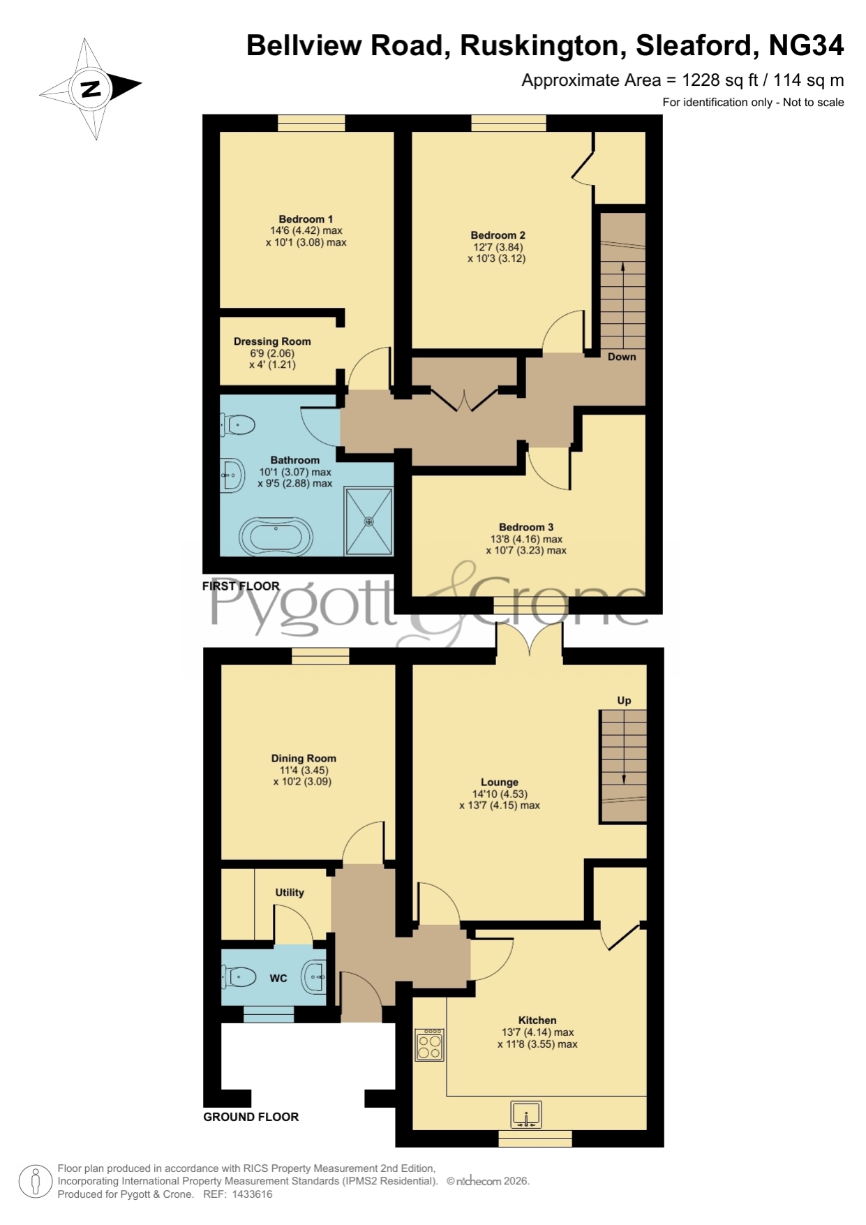 The accommodation extends to some 1228 sqft briefly comprising hallway, lounge with French doors to garden with integrated blinds, dining room, dining kitchen, utility and wc. To the first floor are three double bedrooms, one with walk in wardrobe, bathroom with free standing bath and separate shower, also further large built in storage on the landing.