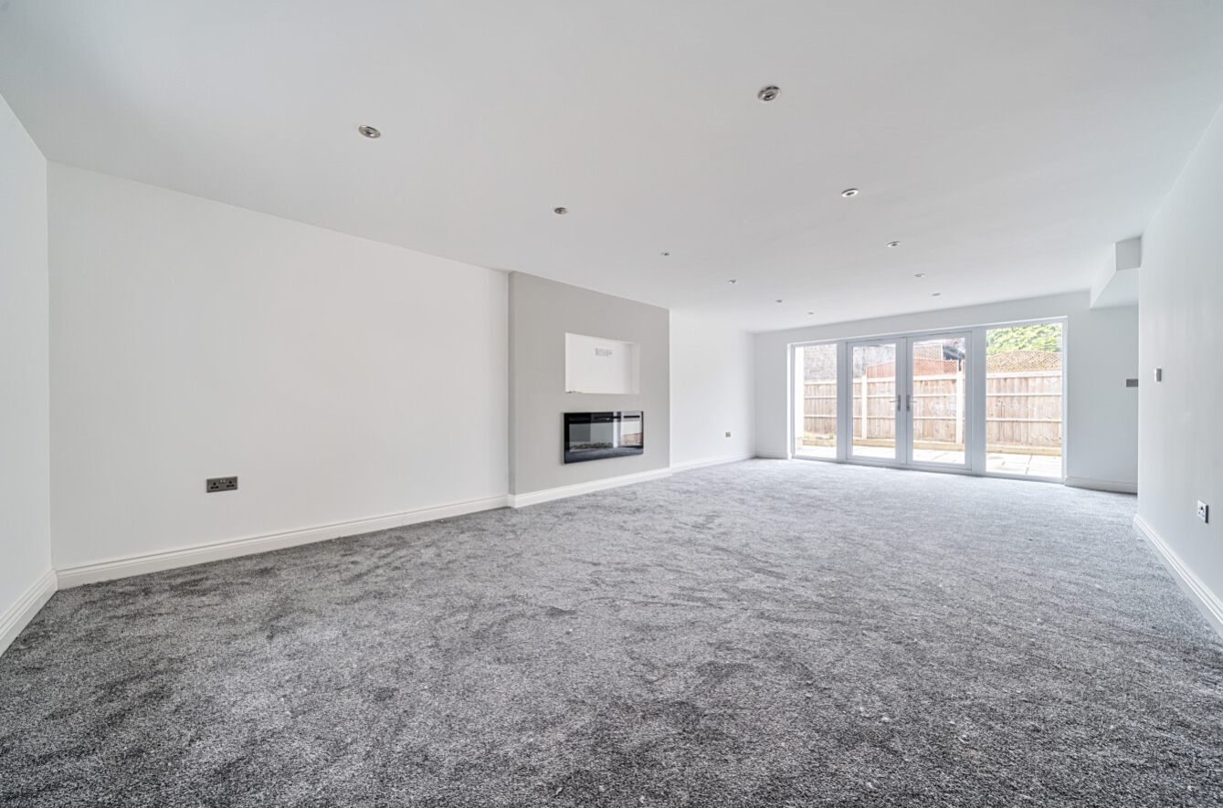 The impressive reception hallway leads into a magnificent open-plan living, dining and kitchen space, crafted to create a seamless flow for both everyday living and sophisticated entertaining. The dual-aspect living area enjoys wonderful natural light and features double doors opening directly onto one of the landscaped outdoor dining terraces, perfect for alfresco entertaining.
