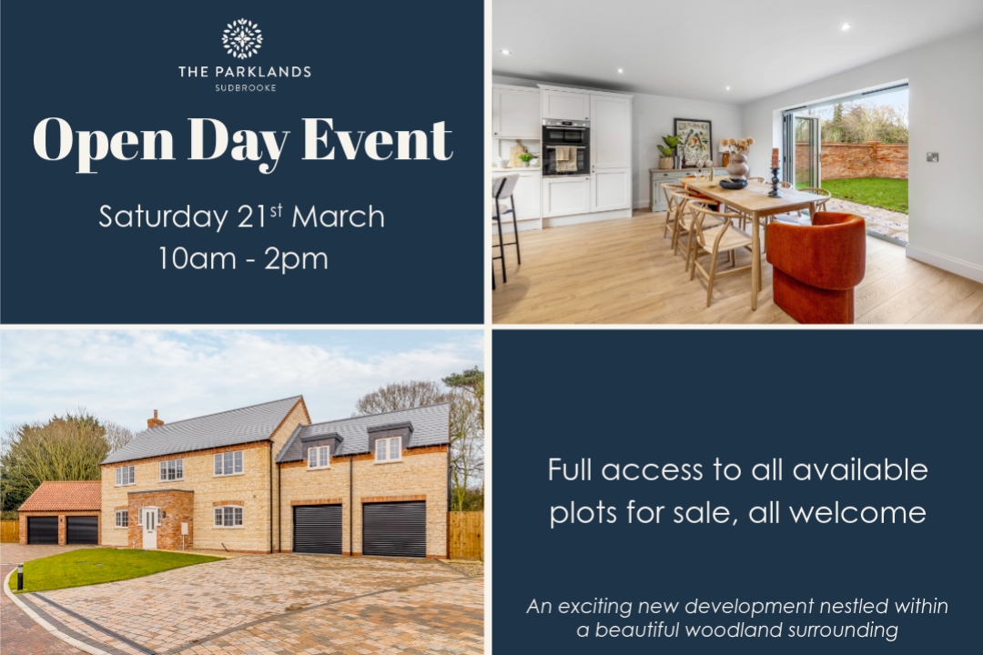 OPEN DAY EVENT – Saturday 21st March 10am-2pm – An opportunity to have a look around these stunning new homes within a woodland setting at the Parklands, Sudbrooke. All Welcome and no appointment needed THE POULTER: Visually stunning outside and in, this spacious family home boasts a grand, feature Entrance Hallway, A large Living Room with bi-folding doors and Kitchen Diner with French doors leading out to an enclosed garden, Office, Cloakroom Utility Room and WC complete the substantial ground floor. Moving upstairs, the open landing provides access to Five generous double bedrooms leading off it, two with En Suite facilities, while the main Bathroom is also on the first floor. This property also benefits from a driveway and double garage.