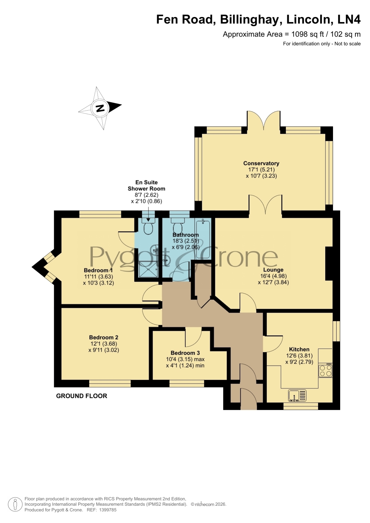It briefly comprises entrance hall, main hall, lounge, conservatory, dining kitchen, three bedrooms with an en suite shower room to the main and a family bathroom.
