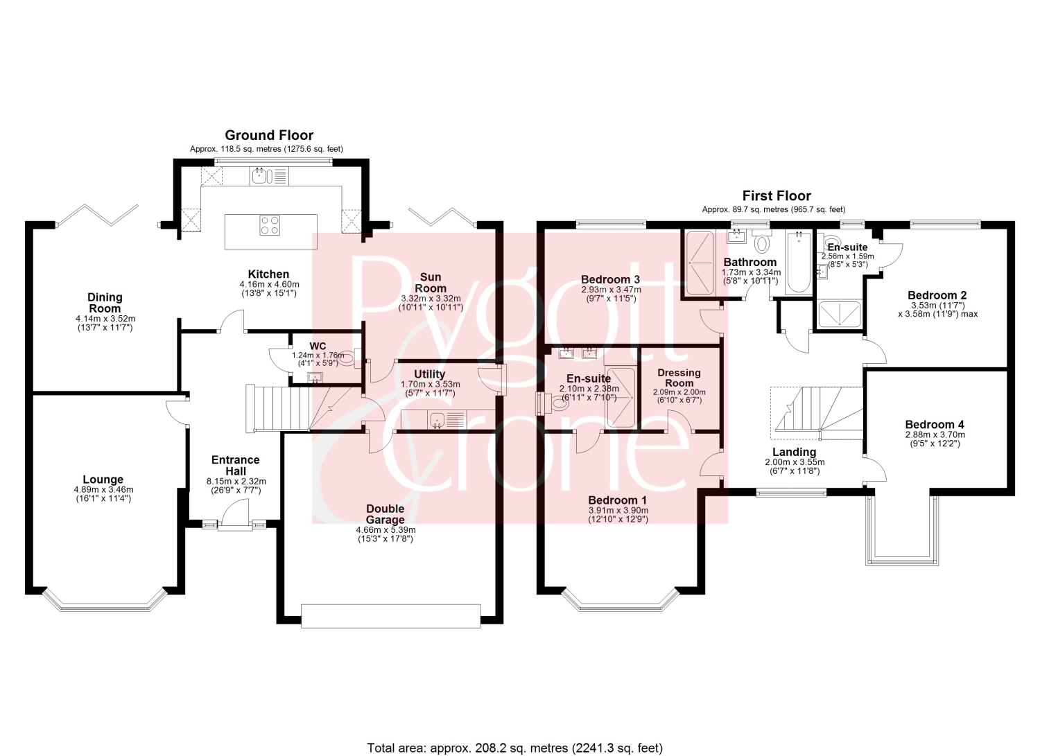 The overall accommodation briefly comprises: Entrance hallway, lounge, downstairs w/c, separate utility room and across the rear with bi folding doors an expensive kitchen dining living space, each with its own allocated spaces yet still offering an open plan experience. The first floor offers four double bedrooms, an ensuite shower room to bedroom one plus a dressing room, an ensuite shower room to bedroom two plus a main family bathroom.