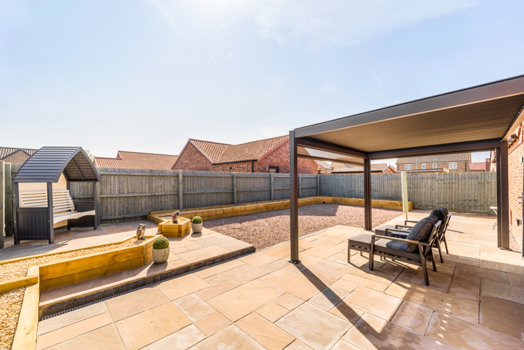 Outside continues with a block paved driveway providing off road parking and leading to the single garage. To the rear the current vendors have landscaped the gardens to include a pergola, raised beds to border and a raised seating area.