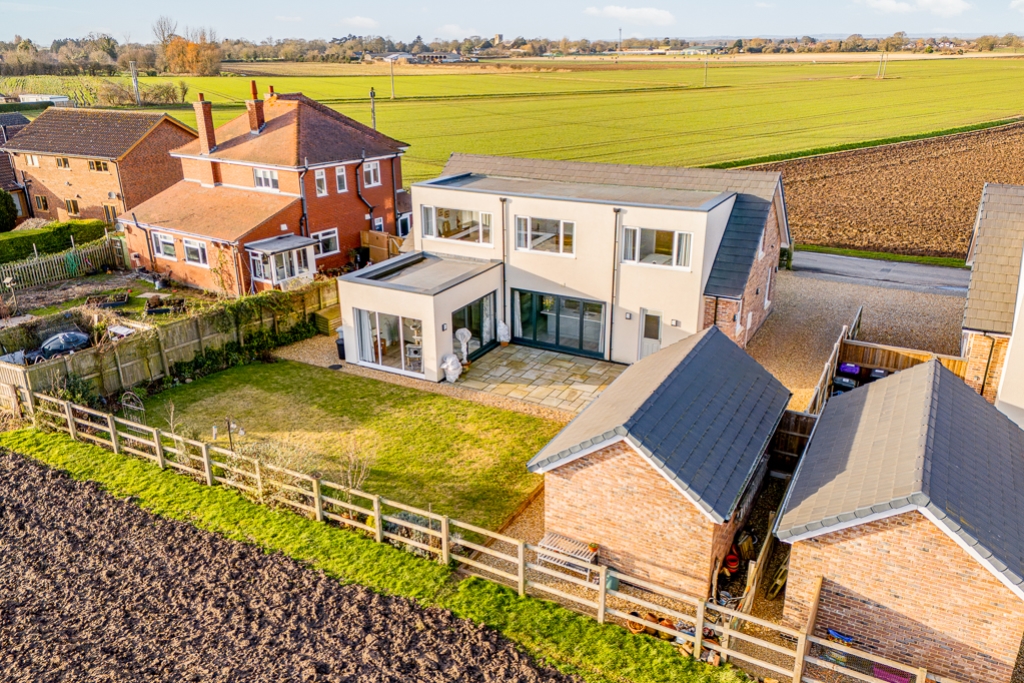 A contemporary designed chalet home built in 2022 with flexible, specious living accommodation both upstairs and downstairs. Set within the village of Friskney, just off the A52 Boston to Skegness, this modern, energy efficient EPC rating ‘A’ home boasts over 200 sqm (2,100 sq. ft) of accommodation and was built to an extremely high specification. Some of the standout features include; Air Source under flooring heating to the ground floor, quality fitted kitchen with Quartz worktops, instant boiling hot water tap, integrated tall fridge, tall freezer and dishwasher, two eye level Bosch ovens, bi folding doors to the rear patio and lots of natural light throughout the home.