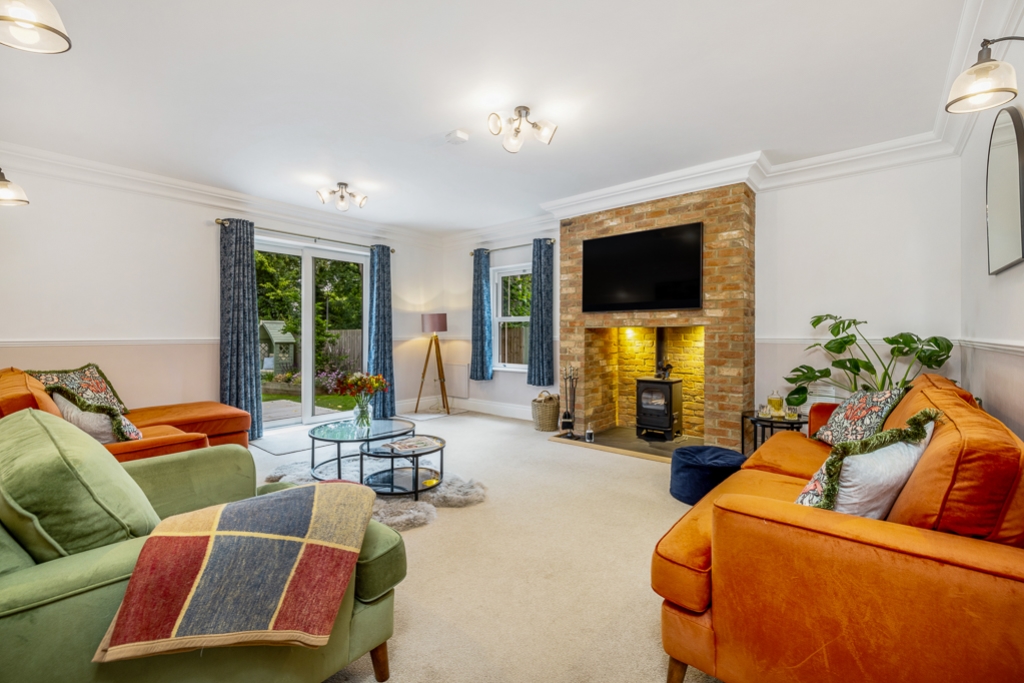 In addition there is a boot room, utility and adjacent, a “heart of the home” open plan kitchen/dining/living space. With two sets of patio doors, this is ideal for guests to naturally flow out into the garden when entertaining. The kitchen comes complete with central island and a set of Neff integrated appliances that include two eye level fan ovens, a microwave, plate warming drawer, 70cm induction hob, dishwasher and a full height separate fridge and freezer.