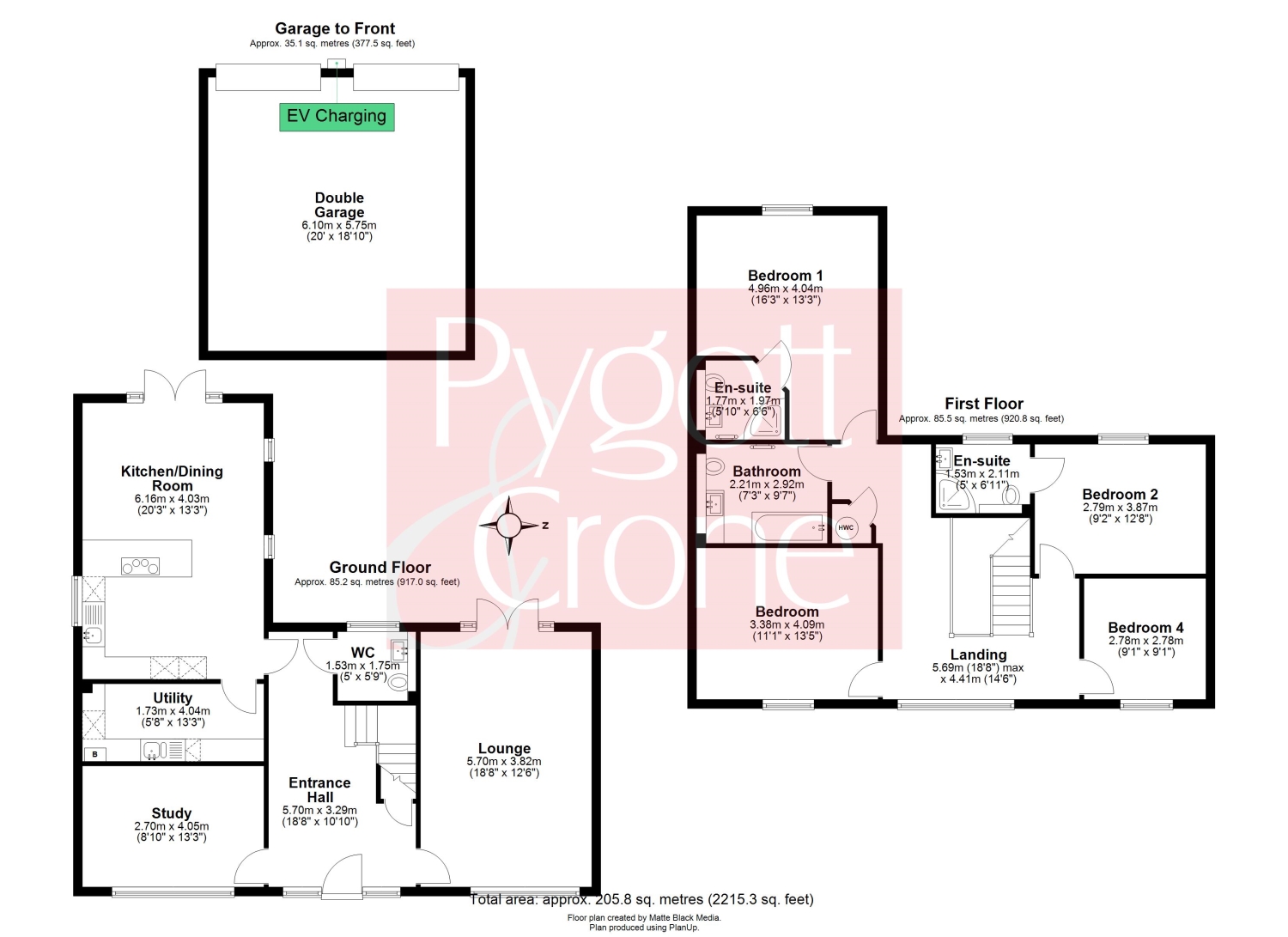 Upstairs, the landing is filled with natural light from a striking triple window. The spacious principal bedroom enjoys peaceful rear views and includes a modern ensuite with quality finishes. A second double bedroom also benefits from its own ensuite, while two further doubles share a well-appointed family bathroom complete with bath, overhead shower, and a large feature mirror. With stylish fixtures, ample light, and thoughtful design throughout, this home perfectly balances practicality with contemporary comfort.