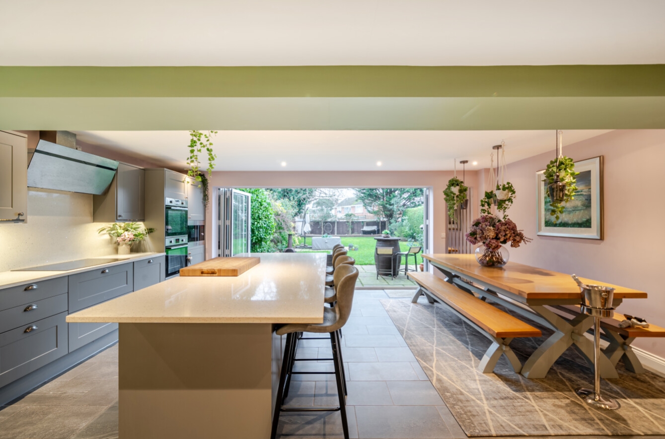 We are excited to offer for sale this stunning family house that has been substantially extended and improved to a very high standard to create a particularly spacious home that absolutely must be viewed to be fully appreciated. The accommodation extends to some 2215 sqft and features gas fired central heating, uPVC double glazing and includes high quality kitchen and bathrooms. The kitchen in particular has an island with breakfast bar, Belfast sink, integrated appliances and bifold doors to the gardens.