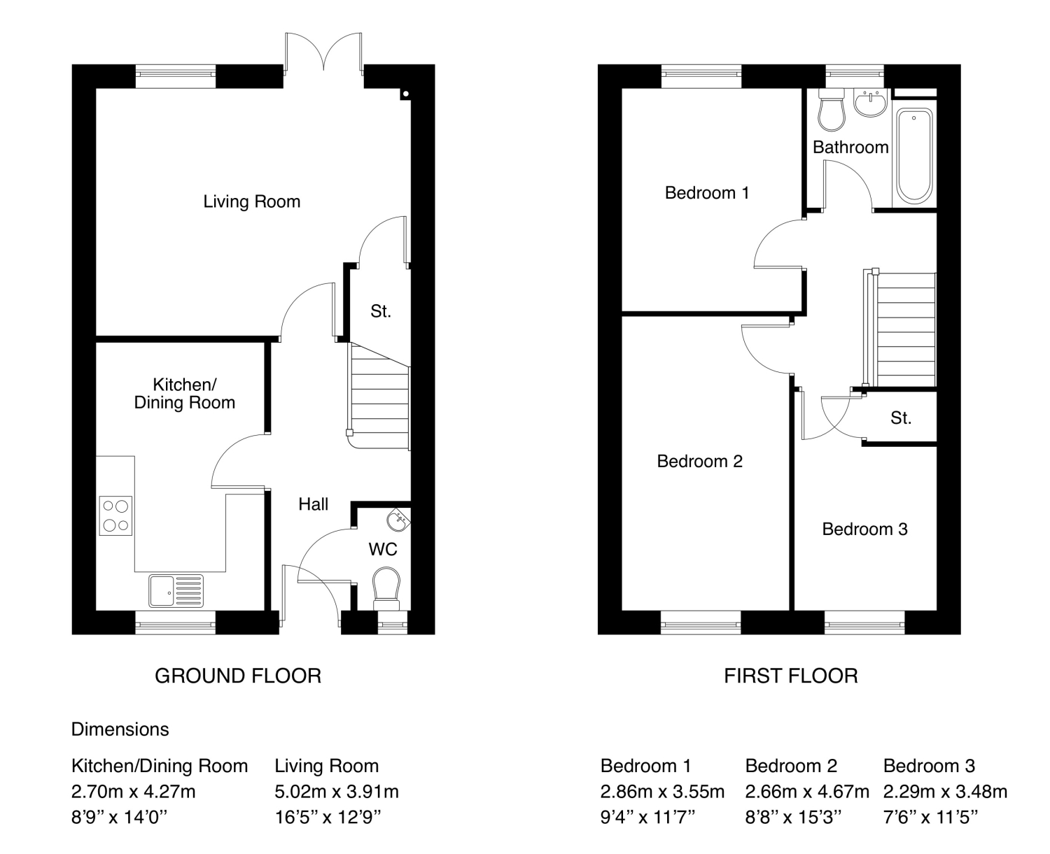 The front door of this home opens onto the hall which leads into the separate living room and a modern kitchen/dining room, which has a built-in oven, hob and hood with the added benefit of a space for a fridge freezer and washing machine. The living room also features French doors opening onto the rear enclosed garden, which will be freshly turfed. The ground floor also boasts a downstairs WC.
