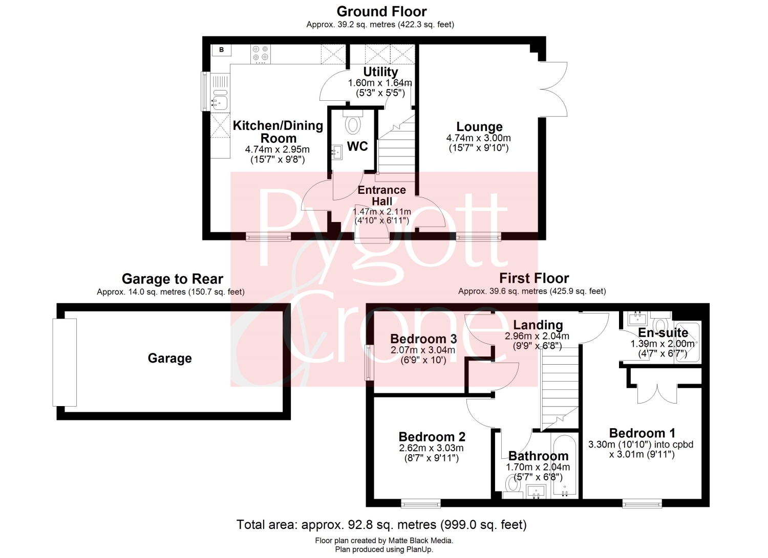 Three bedrooms, main with en-suite