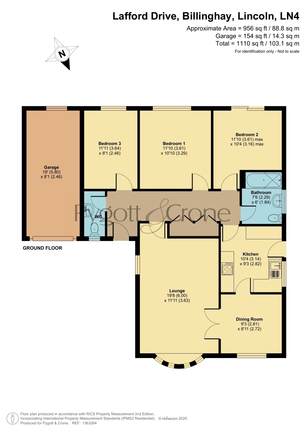 The accommodation extends to some 956sqft and briefly comprises hall, WC, dual aspect lounge, dining room, kitchen, three bedrooms one with patio doors to the garden and a bathroom with electric shower over the bath.
