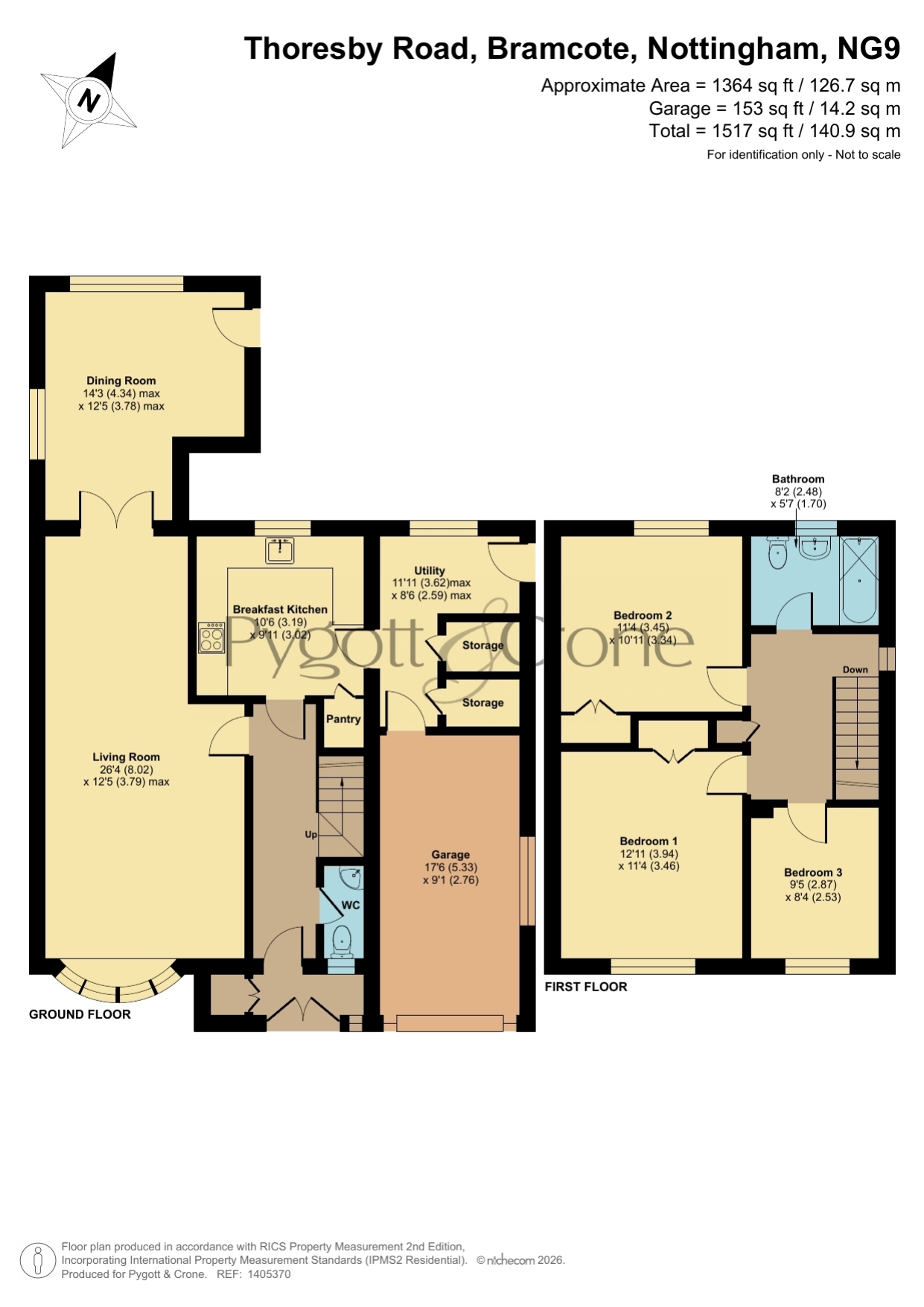 Upstairs, the home continues to impress with three well-proportioned bedrooms. The main bedroom benefits from in built wardrobes and a charming window, while the second double also offers built-in storage and a view across the mature rear garden. The third bedroom is equally generous, making it ideal for children, guests, or as a home office. A family bathroom serves all rooms, featuring a bath with electric separate over, pedestal wash basin and WC.