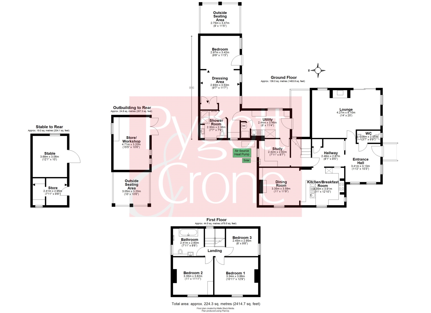 The ground floor also benefits from a study, providing a useful space for home working or a quiet reading room, together with a convenient ground floor WC.