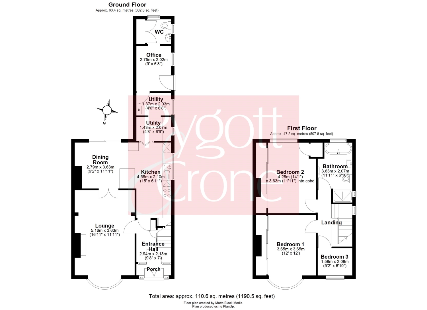 To the first floor are three bedrooms arranged off the landing and a family bathroom serves all three rooms.