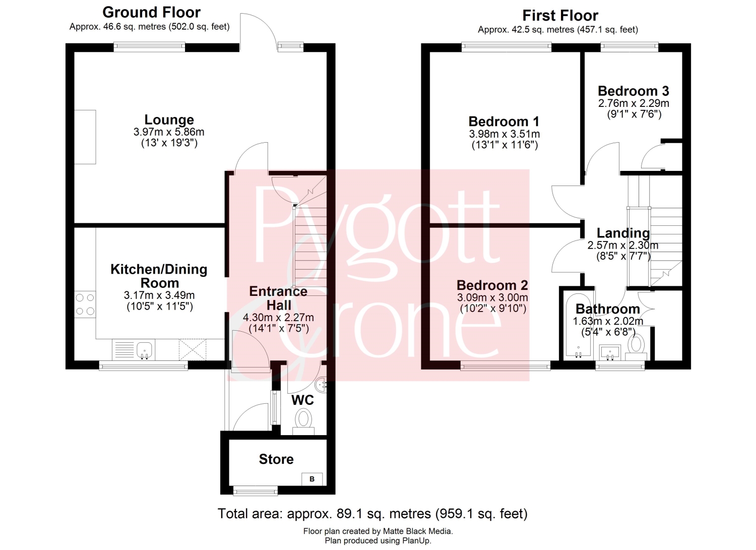 To the first floor, the landing provides access to three bedrooms and the family bathroom. The main bedroom is a generous double room, while bedroom two also offers comfortable space for a double bed. Bedroom three is ideal as a single bedroom. The family bathroom is fitted with a three-piece suite comprising bath, wash hand basin and WC.