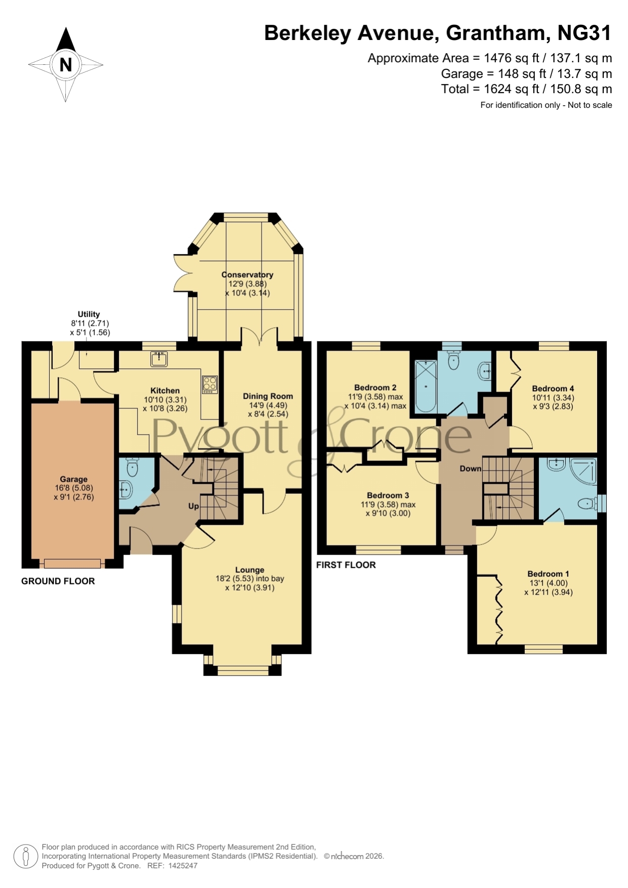 To the first floor, the landing leads to a family bathroom and four generously sized double bedrooms, all of which benefit from fitted wardrobes. The primary bedroom enjoys the added luxury of a modern en-suite shower room.