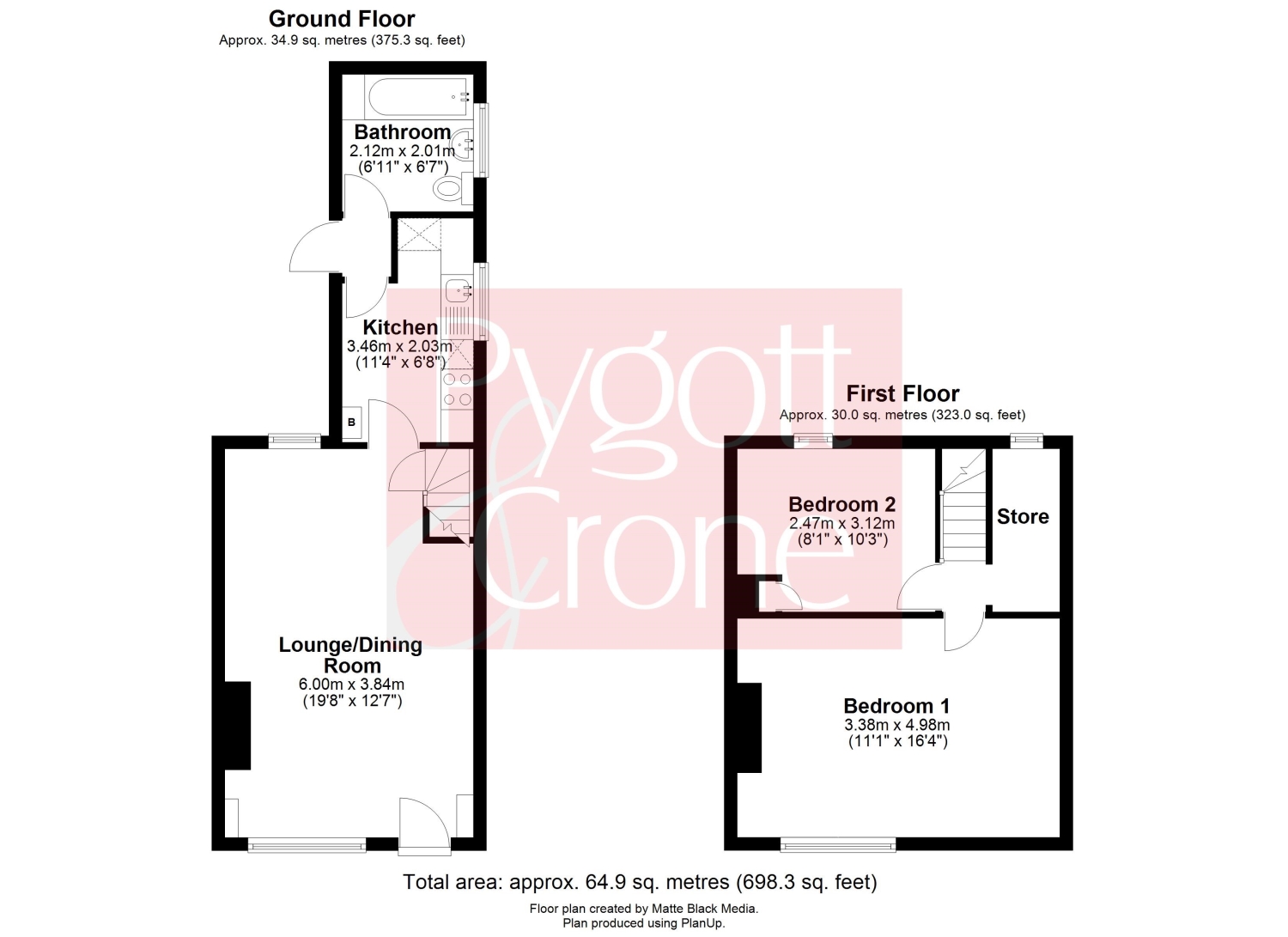 The accommodation briefly comprises a spacious lounge/dining room, fitted kitchen and a ground floor bathroom. To the first floor are two bedrooms along with a useful storage area.