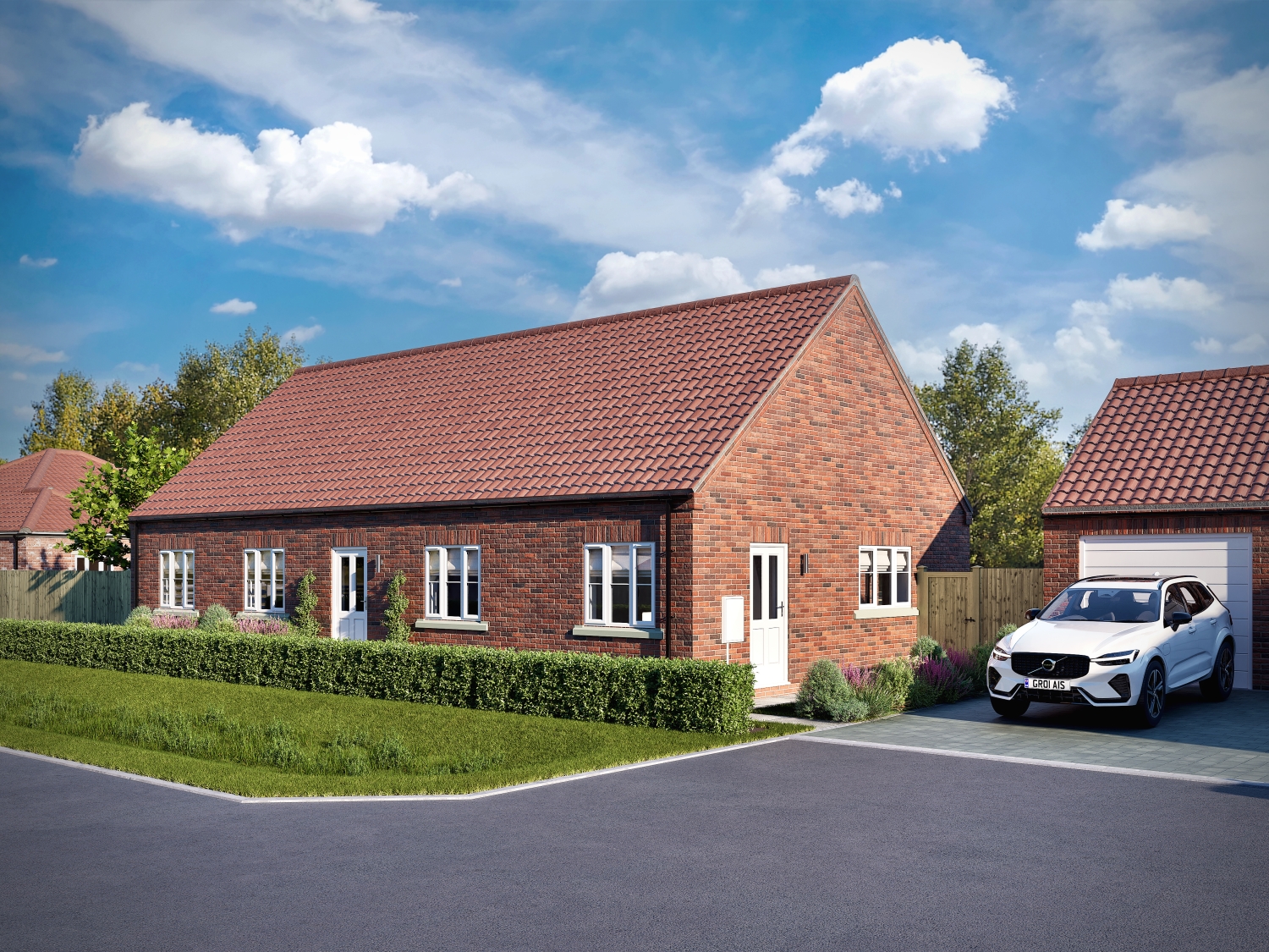 The development comprises a selection of three bedroom detached bungalows, three bedroom detached houses and four bedroom detached houses, each benefitting from a single or double garage depending on plot. Designed with modern living in mind, the properties combine attractive external finishes with practical, high-specification interiors.