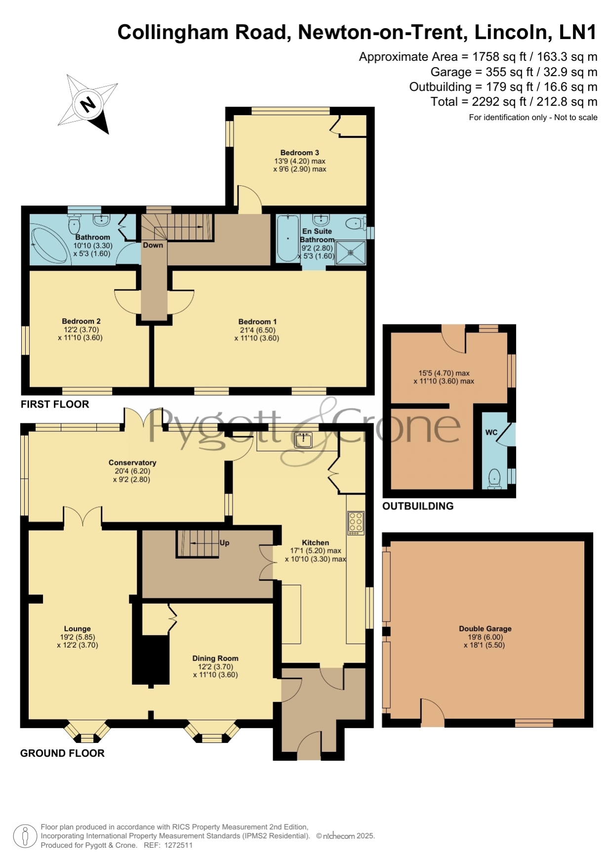 First floor offering three double bedrooms, including a main bedroom with ensuite, alongside a contemporary family bathroom