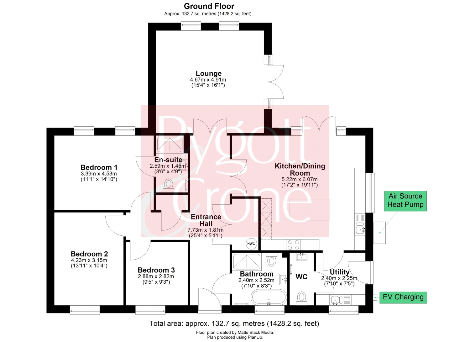 Underfloor heating throughout, powered by an energy-efficient air source heat pump